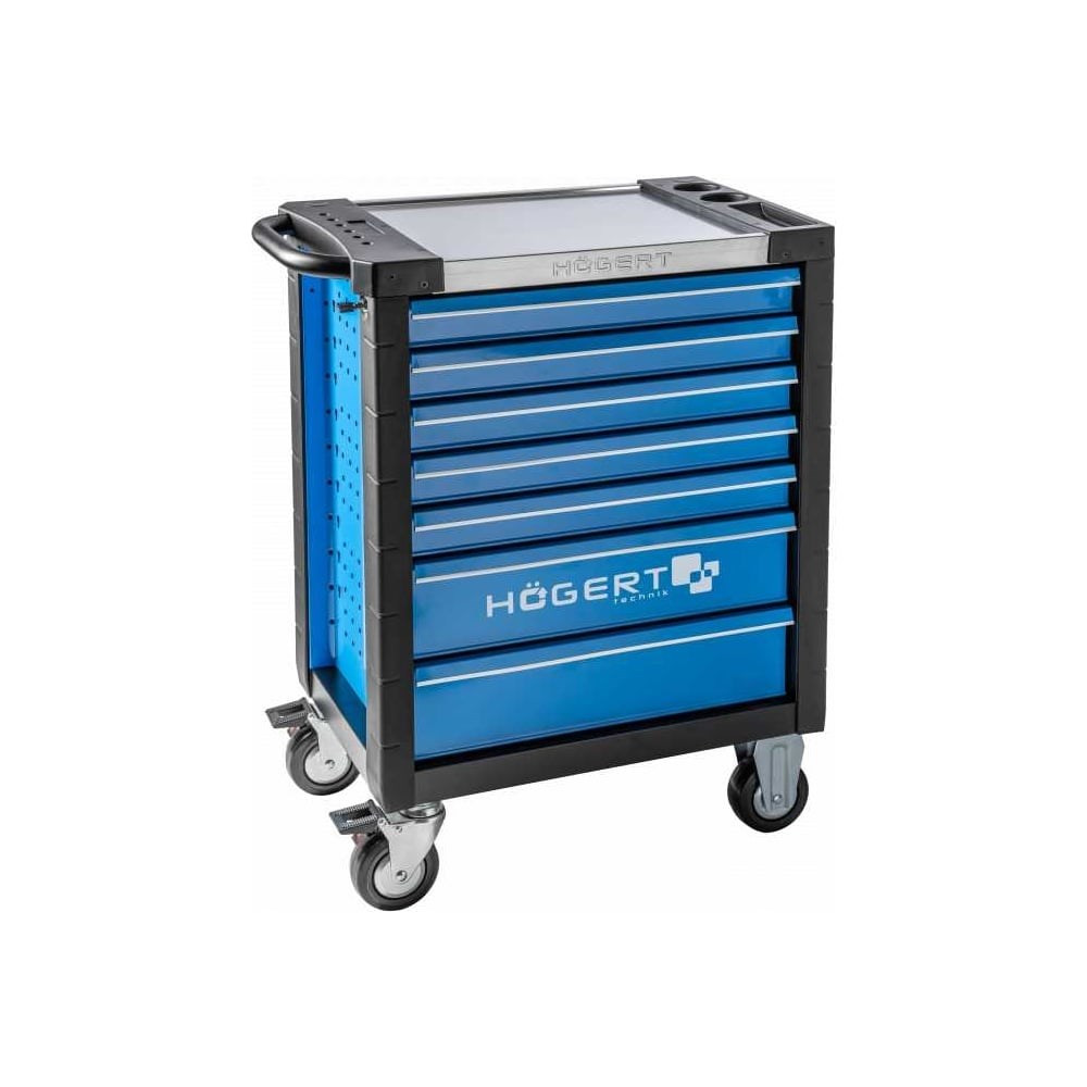 Идеальное решение для организации рабочего пространства и хранения инструментов в мастерской или гараже!HOEGERT TECHNIK HT7G051 - это не просто тележка, это полноценный мобильный инструментальный центр, оснащенный 346 высококачественными инструментами и продуманной системой хранения. С 7 вместительными ящиками и прочной конструкцией, эта тележка станет незаменимым помощником для профессионалов и любителей DIY. Современный дизайн и функциональность делают ее идеальным дополнением к любой мастерской.Преимущества тележки HOEGERT TECHNIK HT7G051:Полный комплект инструментов: 346 инструментов, готовых к работе, избавят вас от необходимости искать нужный инструмент в самый ответственный момент.Оптимальная организация: 7 ящиков различной глубины (5 x 550 x 400 x 75 мм, 2 x 550 x 400 x 154 мм) позволяют удобно разместить инструменты различных размеров и типов.Надежность и безопасность: Усиленные шариковые направляющие ящиков, блокировка от автоматического выдвижения и защита от выдвижения более одного ящика обеспечивают безопасное и комфортное использование.Мобильность и маневренность: Колеса из термоэластопласта TPR (2 фиксированных и 2 поворотных) обеспечивают легкое перемещение тележки даже с полной загрузкой.Безопасность хранения: Запирание шкафа на ключ (4 ключа в комплекте) защищает инструменты от кражи.Профессиональный дизайн: Усиленная верхняя часть из нержавеющей стали и перфорированные стенки для крепления дополнительного оборудования подчеркивают профессиональный характер тележки.Характеристики:7 ящиков:5 ящиков размерами: 550 х 400 х 75 мм2 ящика размерами: 550 х 400 х 154 мм346 инструментов в комплектеУсиленные шариковые направляющие ящиковБлокировка от автоматического выдвижения ящикаЗащита от выдвижения более одного ящикаВысококачественные колеса из термоэластопласта TPRДва поворотных колеса с возможностью блокировкиЗапирание шкафа на ключ (4 ключа в комплекте)Перфорированные стенки для крепления дополнительного оборудованияУсиленная верхняя часть из нержавеющей сталиHOEGERT TECHNIK HT7G051 - это инвестиция в порядок, эффективность и профессионализм вашей работы! Закажите сейчас и получите полный набор инструментов в удобном и надежном хранилище!