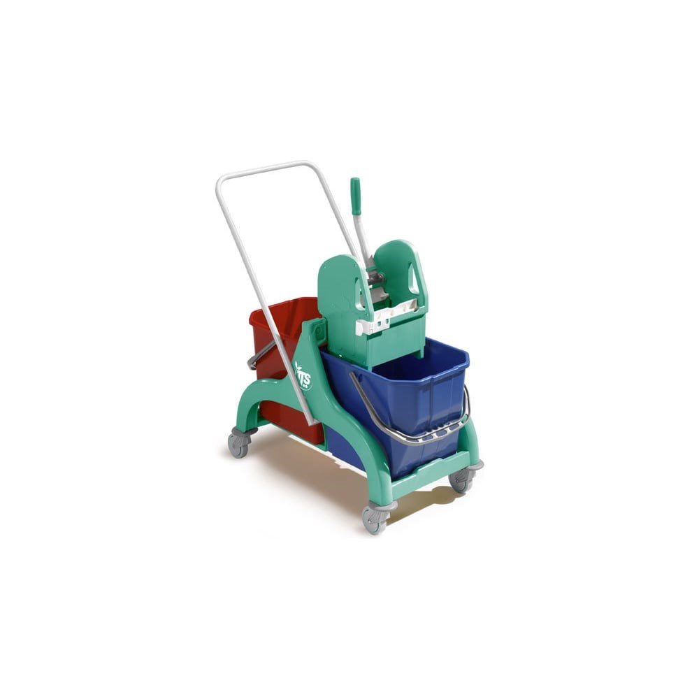 Тележка TTS Nick30 00006083 служит для уборки небольших и средних помещений. Комплектуется двумя ведрами объемом 15 л каждое. Прорезиненные колеса обеспечивают удобную транспортировку и устойчивость на любой поверхности. Тележка оснащена бамперами и системой поддержки ведер. Имеет небольшое пространство для хранения химических жидкостей и мелкого клинингового инвентаря.