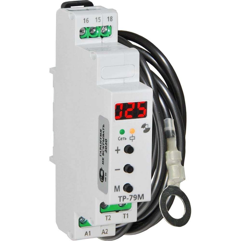 Температурное реле Реле и Автоматика ТР-79М с датчиком ДТ, кабель 2,5м A8223-79683290 предназначено для температурного контроля неагрессивной среды. На лицевой панели находятся 3-х разрядный индикатор, зелёный светодиод, индицирующий наличие питающего напряжения, оранжевый светодиод, индицирующий состояние исполнительного реле и 3 кнопки для программирования. В рабочем режиме индикатор отображает текущую температуру. При подаче питающего напряжения горит зеленый светодиод. При срабатывании исполнительного реле загорается оранжевый светодиод. Если имеет место отказ датчика либо обрыв кабеля, оранжевый светодиод мигает.