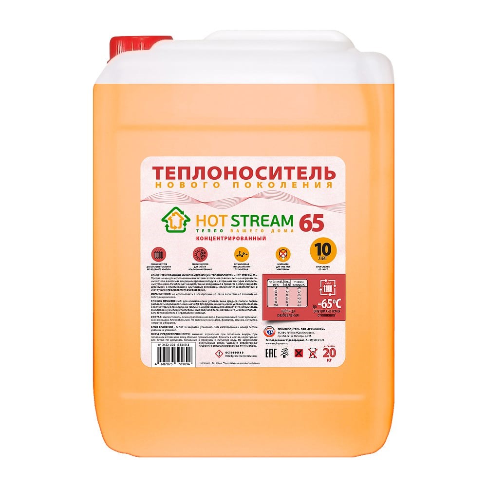 Теплоноситель 65 20кг Hot Stream 18057531 предназначен для систем отопления всех типов нагревательных котлов, тепловых насосах, системах кондиционирования. Изготавливается на основе карбоксилатов - ингибиторов коррозии нового поколения. При использовании не образует канцерогенных соединений. Применение: Разбавить водой в объемных соотношениях, указанных в таблице. Готовый раствор залить в чистую инженерную систему в соответствии с инструкцией производителя оборудования. Внимание! Не применять в электродных котлах и в системах с элементами, содержащими цинк.
