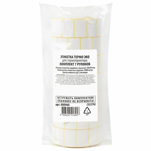 Термоэтикетки ЭКО, 30х20 мм, КОМПЛЕКТ 7 рулонов по 2000 этикеток, 880960
