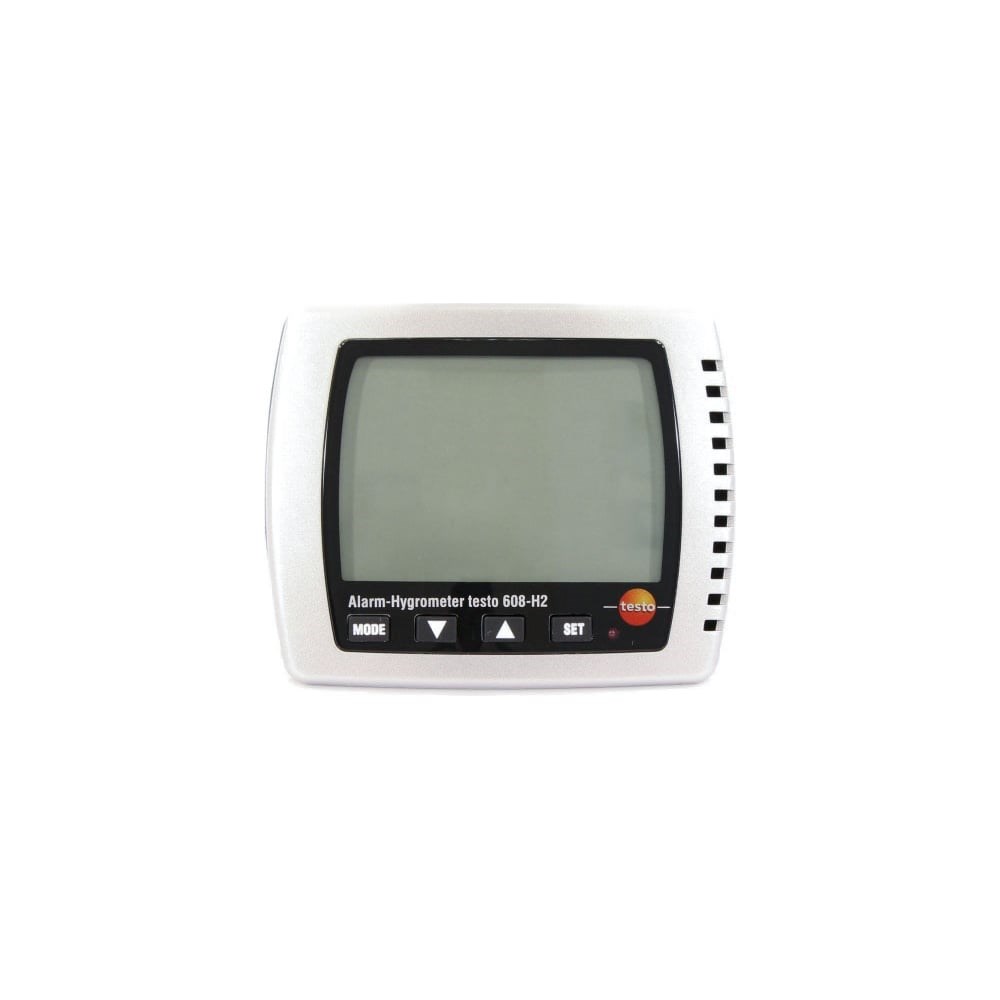 Термогигрометр Testo 608-H2 предназначен для постоянного измерения температуры и влажности воздуха, а также расчёта температуры точки росы на основании полученных измерений. Имеет возможность крепления на стене и используется преимущественно как стационарный прибор. Рабочая температура составляет от-10 до +70 С. Большой экран позволяет считывать информацию на значительном расстоянии, а благодаря современному дизайну и качеству изготовления прибор прекрасно впишется в любой интерьер. Термогигрометр имеет такие дополнительные функции, как фиксация полученных данных на экране, отображение максимальных и минимальных значений на дисплее, цветовая и звуковая сигнализация о превышении порогов. Управление прибором простое и интуитивное, осуществляется клавишами, расположенными на передней панели. Термогигрометр работает от батареек, ресурс работы которых составляет около года.