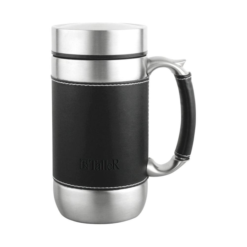 Термокружка Термокружка TALLER Blake/Блэйк 0.45 лTR-22406 может стать хорошим подарком для мужчины. Сделана из высококачественной нержавеющей стали марки 18/10 с матовой полировкой. Кружка покрыта экокожей, которая приятна на ощупь и препятствует скольжению. Плотная пробка предотвращает проливание. Температура горячего напитка поддерживается в течение 6 часов (63⁰C), 12 часов (48⁰C). Рекомендуется ручная мойка.