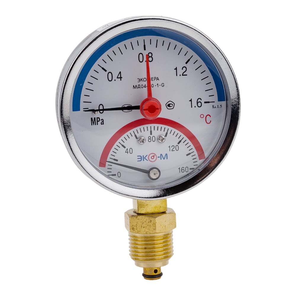 Термоманометр комера МД04 - комбинированный прибор, предназначенный для измерения температуры и избыточного давления неагрессивных к медным сплавам сред в системах теплоснабжения и водоснабжения.Все приборы поверены и внесены в АРШИН.