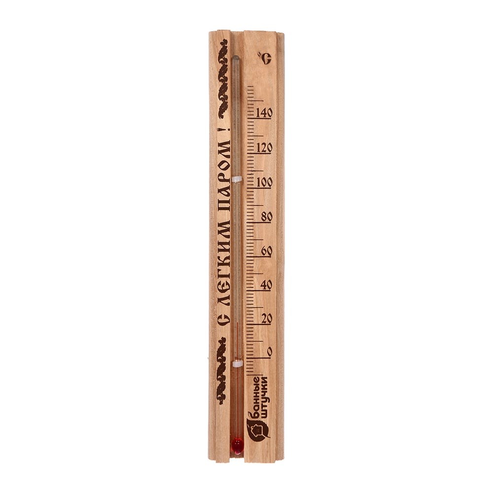 Термометр для бани и сауны Банные штучки С легким паром, 21x4x1.5 см 18018 предназначен для измерения температуры воздуха. Изделие выполнено из дерева, является экологически чистым. Модель хорошо впишется в любой интерьер.