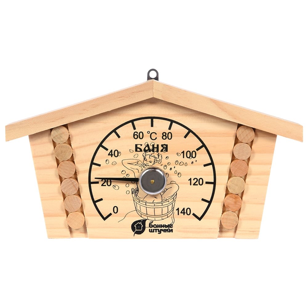 Термометр для бани и сауны Банные штучки Избушка 23х12.5х2.5 см 18014 станет хорошим украшением для интерьера парной. Изготовлен из натуральной древесины. Максимальная измеряемая температура - 140 градусов Цельсия.