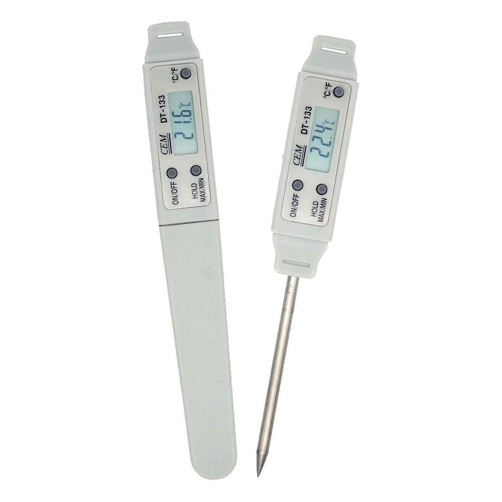 Термометр СЕМ DT-133 481738 оснащается погружным щупом для тесного контакта с исследуемым материалом. Для получения точных и достоверных сведений рекомендуется опускать наконечник в измеряемую среду не менее чем на половину длины. Запуск прибора осуществляется нажатием на кнопку ON/OFF. Есть возможность измерять температуру жидких, вязких и сыпучих материалов. Термометр позволяет использовать в качестве единиц измерения как градусы по Цельсию, так и градусы по Фаренгейту.