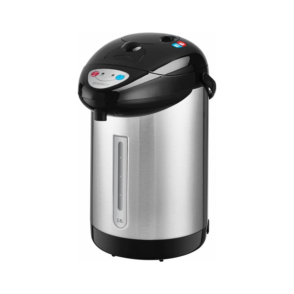 Термопот Energy TP-603 3.8 л 750 Вт стальной 280027 предназначен для дома или офиса. Используется для нагрева воды и удержания ее температуры в течение длительного времени, что экономит время и силы на многоразовый разогрев чайника. Имеет объем 3.8 литра, поэтому отличается вместительностью, за счет чего подходит для нескольких человек. Термопот оснащен ручкой, поэтому удобен при переноске, что позволяет брать его с собой на пикник или на дачу. Дополнительные технические характеристики: Способ подачи воды: автоматическая (нажатием кнопки, нажатием чашкой) и ручная. Блокировка ручной помпы. Функция повторного кипячения. Функция поддержания температуры. Быстрое кипячение воды. Энергосберегающий принцип работы. Скрытый нагревательный элемент. Нержавеющая стальная колба. Индикатор уровня воды. Вращающийся корпус на 360⁰. Съемный шнур питания. Корпус из нержавеющей стали. Мощность 750 Вт. Мощность в режиме поддержания температуры: 35 Вт.