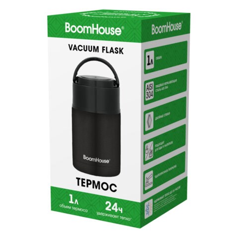 Термос 1 л для еды/напитков с широким горлом, BOOMHOUSE (БУМХАУС) LUNCH, нержавеющая сталь SUS304, черный, 700327