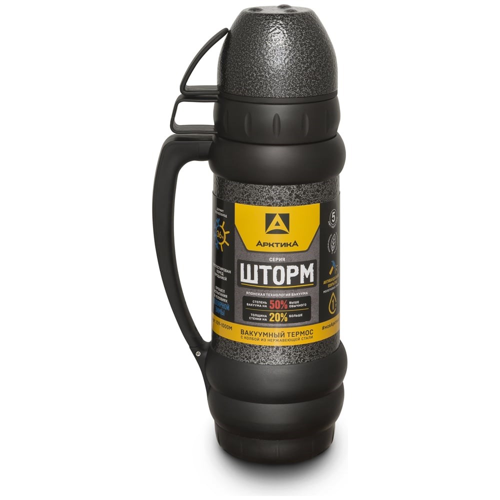 Термос с узким горлом Арктика 1 л, черный, 109-1000М-BKм подходит для использования в экстремальных условиях. Покрыт молотковой эмалью, которая обладает ударопрочностью, устойчива к механическим повреждениям и увеличивает срок эксплуатации. Благодаря японским технологиям надежно сохраняет температуру содержимого в течение 36 часов - незаменим на зимней рыбалке или в длительном походе. Конструкцией предусмотрена удобная ручка, которая значительно облегчает наливание напитка и переноску. Все элементы не токсичны и безопасны для здоровья.