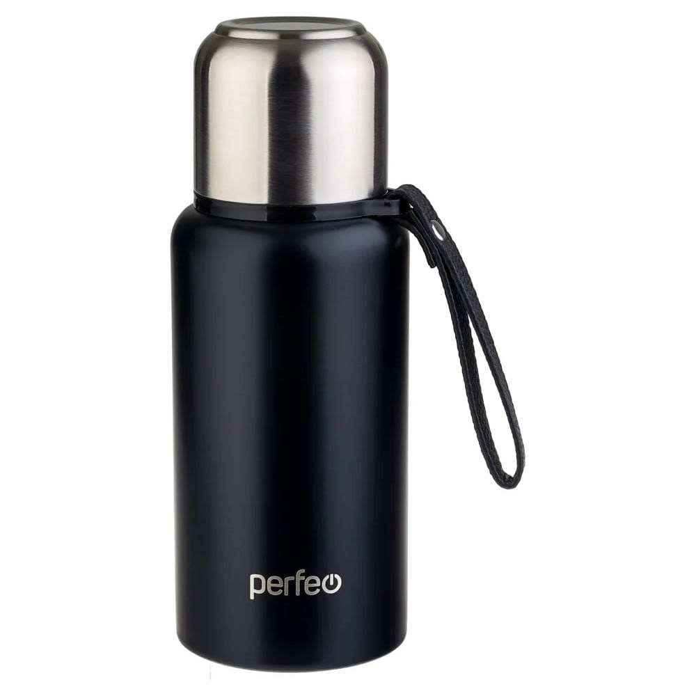 Термос для напитков Perfeo с глухой пробкой, ситечком, ремешком, объем 0.5 л, черный 30015997 имеет двойные стенки колбы, которые сохранят напитки теплыми или холодными длительное время. Абсолютная герметичность предотвращает утечку. Крышку можно использовать в качестве чашки. Защитная силиконовая накладка на дне корпуса предотвращает скольжение.