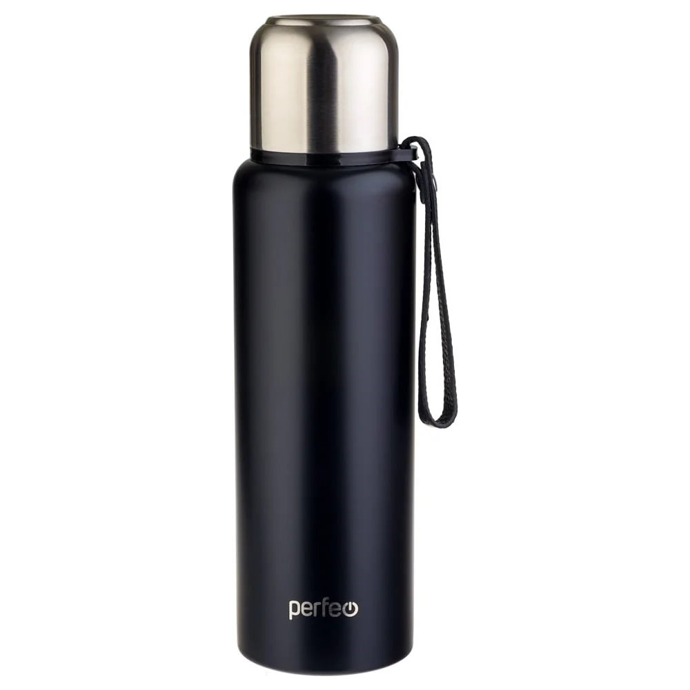 Термос для напитков Perfeo с глухой пробкой, ситечком, ремешком, объем 0.8 л, черный 30015998 имеет двойные стенки колбы, которые сохранят напитки теплыми или холодными длительное время. Абсолютная герметичность предотвращает утечку. Крышку можно использовать в качестве чашки. Защитная силиконовая накладка на дне корпуса предотвращает скольжение.
