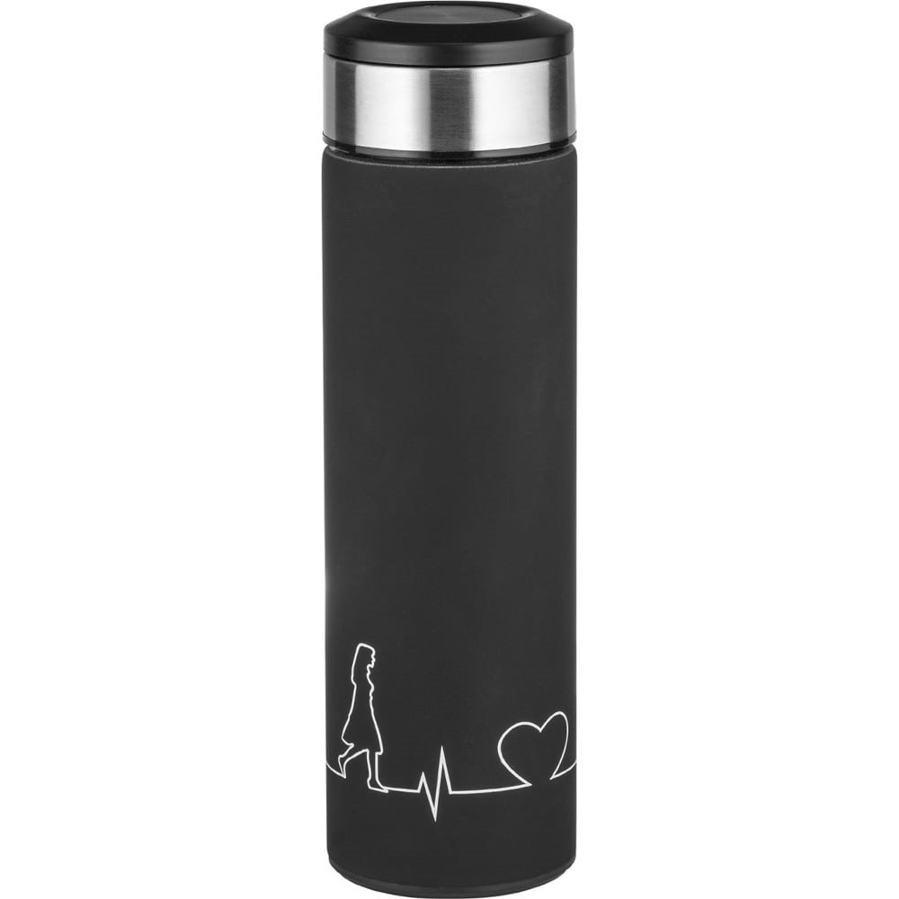 Термос Lara черный/сталь, 420мл, soft touch, фильтр-ситечко для заваривания LR04-19 подойдет как для работы, так и для отдыха. Главная особенность его заключается в съемном ситечке для заваривания чая и трав. На корпус нанесено софт-тач покрытие, поэтому держать его в руке очень удобно. Дно корпуса выполнено из пластика, поэтому этим термосом невозможно поцарапать полировку стола. Ситечко и колба изготовлена из высококачественной пищевой нержавеющей стали AISI 304 с 18-процентным содержанием никеля, и 8 процентами хрома.