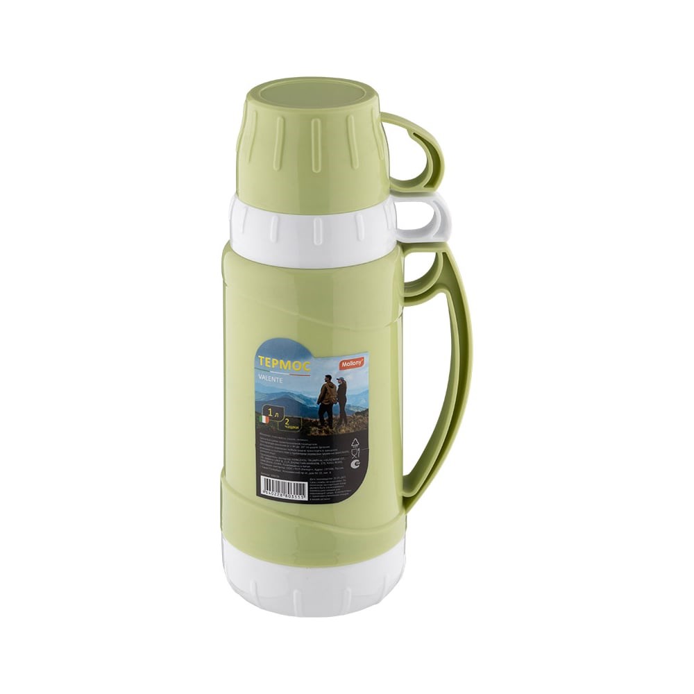 Термос в пластиковом корпусе со стеклянной колбой Mallony valente, 1.0 л, 2 чашки 106036