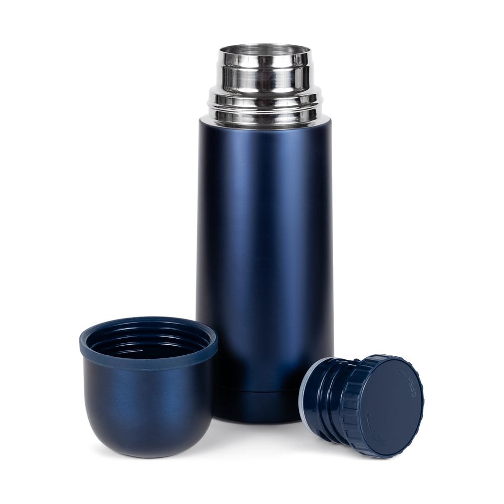 Термос Relaxika 101 0.35 л, темно-синий, без лого R101.350.2NL выполнен из высококачественной нержавеющей стали и пищевого пластика. Является отличным выбором для всех родителей, которые заботятся о здоровье своих детей. Узкое горлышко сохраняет температуру, тепло или холод более длительное время. Пробка имеет надежную конструкцию и надежно защитит ваш напиток от протекания. Пробка для термоса без кнопки позволяет лучше сохранять герметичность и температуру. Достаточно немного открутить крышку-пробку для наливания напитка, т.е. раскручивать ее нет необходимости, что является преимуществом, когда вы находитесь в дороге. В сравнении пробок с клапаном и без, выбор идет в пользу второго варианта, так как уменьшается вероятность сильных теплопотерь за счет количества проникающего воздуха. Крышку можно использовать как чашку. Теперь нет необходимости брать с собой дополнительные кружки. Благодаря компактному размеру и легкому весу, эта модель не занимает много места, ее удобно носить в сумке или рюкзаке. В отличии от термоса со стеклянной колбой, термос из нержавеющей стали устойчив к ударам и повреждениям и легок в эксплуатации, а отсутствие в конструкции ситечка делает использование более гигиеничным.