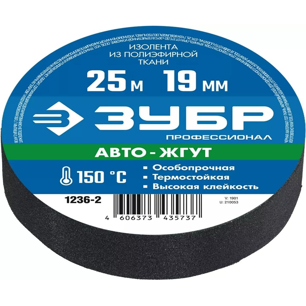 Термостойкая текстильная изолента ЗУБР Авто-Жгут 19 мм х 25 м 1236-2 предназначена для надежной и быстрой изоляции проводов и труб. Очень высокое сопротивление к воздействиям окружающей среды, высокая стойкость к истиранию и гниению. Особо прочная термостойкая (до +150 °С).