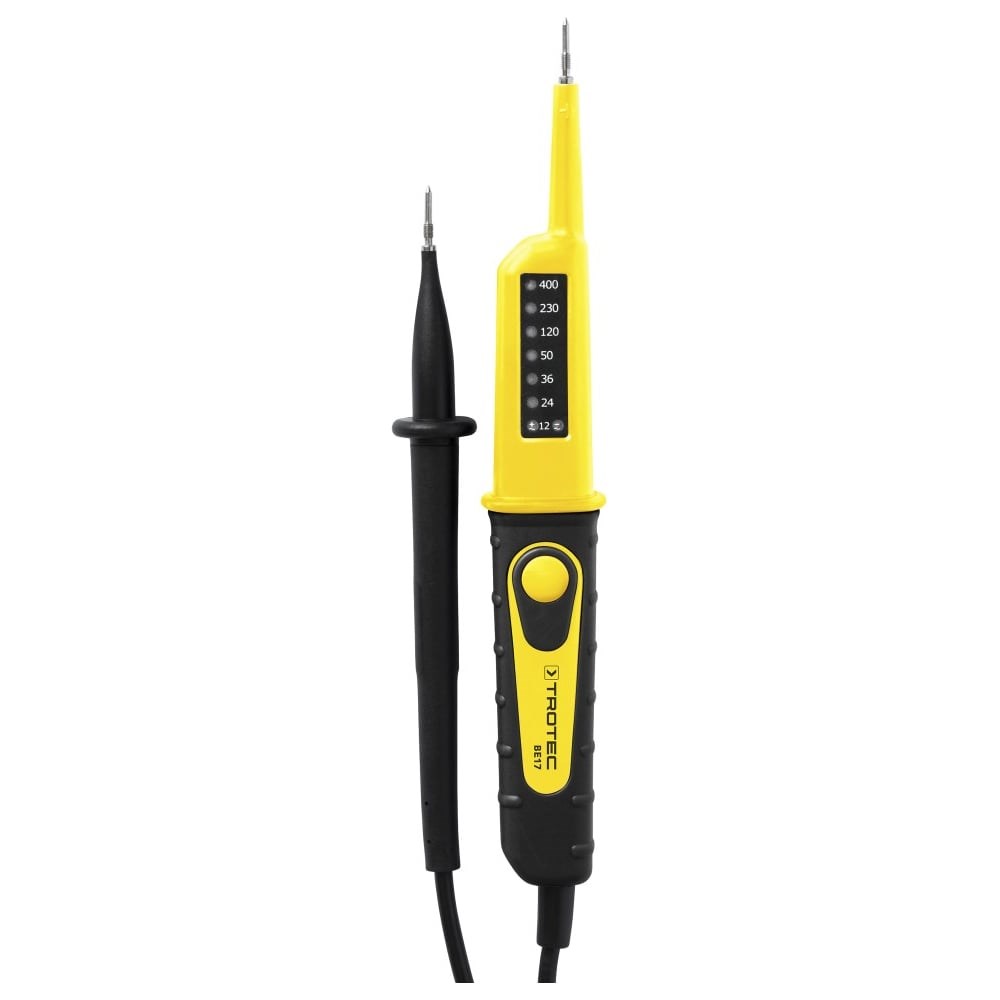 Тестер напряжения TROTEC BE17 отличается точными измерениями. Данная модель позволяет измерять переменное, постоянное напряжение и соответствующую полярность, а также имеет функцию тестирования устройств защитного отключения (УЗО). Состояние всех измеренных значений можно легко прочитать с помощью дискретных светодиодов. Благодаря эргономичной конструкции тестер напряжения удобно лежит в процессе длительного использования. Кроме того, его ударопрочный, пыленепроницаемый и брызгозащищенный корпус, соответствующий степени защиты IP64, позволяет работать в тяжелых условиях каждый день.