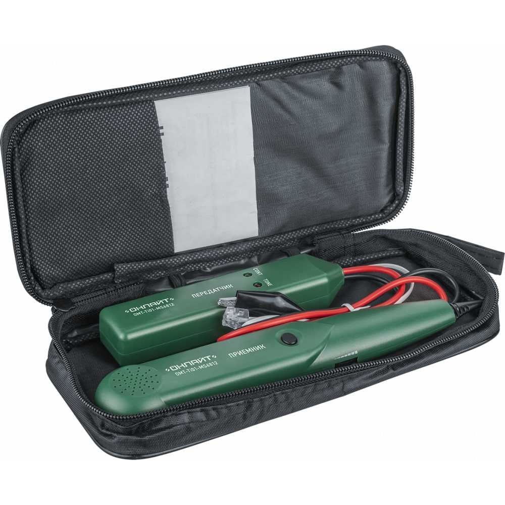 Кабельный тестер трассоискательТестер кабеля с генератором сигнала MS6812 от Онлайт предназначен для поиска проводов и кабелей, прослеживания трассы их прокладки в кабельной линии без повреждения изоляции, а также для определения состояния телефонной линии. Передатчик оснащен двумя зажимами типа «крокодил» для подключения к проводу, а также телефонным разъемом для проверки телефонной линии. О результате работы сообщает звуковой сигнал, громкость которого задается пользователем.Поставляется в комплекте с батарейками Крона 9 В ( 6F22) и кофром.