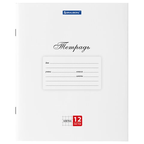 Тетрадь 12 л. BRAUBERG КЛАССИКА, клетка, обложка картон, БЕЛАЯ, 106457
