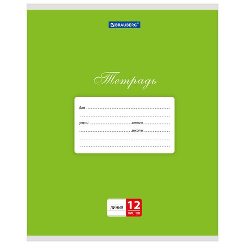 Тетрадь 12 л. BRAUBERG КЛАССИКА, линия, обложка картон, ЗЕЛЕНАЯ, 104726