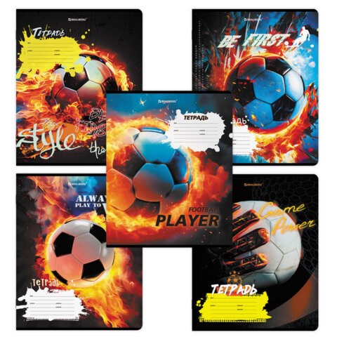Тетрадь 12 л. BRAUBERG косая линия, обложка картон, ФУТБОЛ, 107290