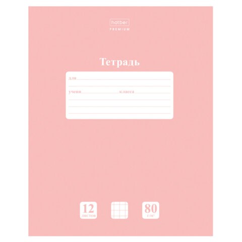 Тетрадь 12 л., HATBER Premium, клетка, обложка картон, плотная бумага 80 г/м2, "NEWtone" Розовый кварц, 089680, 12Т5A1_05056