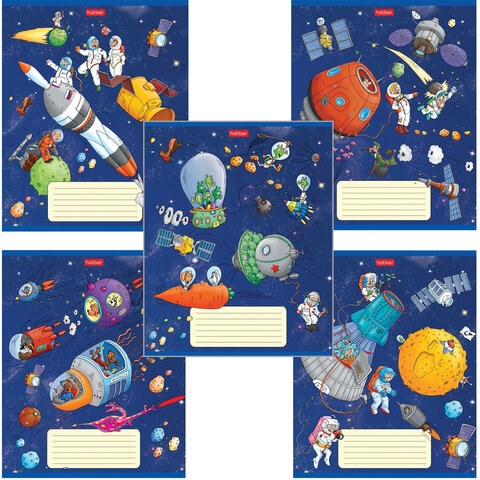 Тетрадь 18 л. HATBER клетка, обложка картон, "Космическое приключение" (5 видов в спайке),18Т5В1