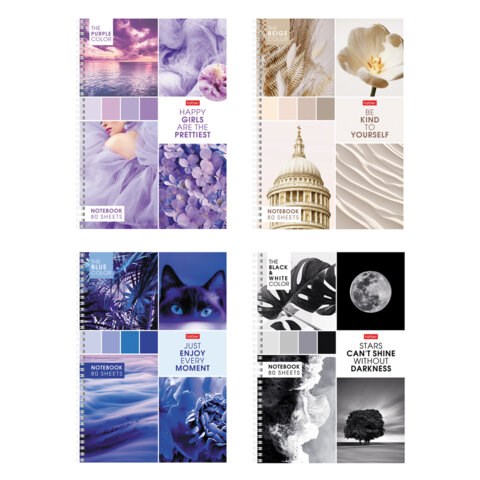 Тетрадь А4 формата 80 листов. Обложка: мелованный картон. Внутренний блок: офсет 60-65 гр., клетка, многоуровневая перфорация. Скрепление: гребень. Внутренний блок имеет универсальную перфорацию для подшивки листов в папку, перфорация на отрыв имеет засечку для более удобного использования. Крепление 'гребень' позволяет переворачивать страницы на 360 градусов, а жесткая подложка позволит делать записи на весу.