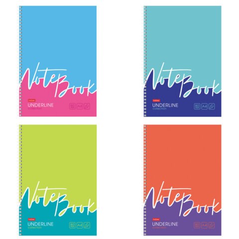 Тетрадь А4 80 л., HATBER, гребень, клетка, обложка картон, жесткая подложка, "Underline" (микс), 077006, 80Т4В1гр