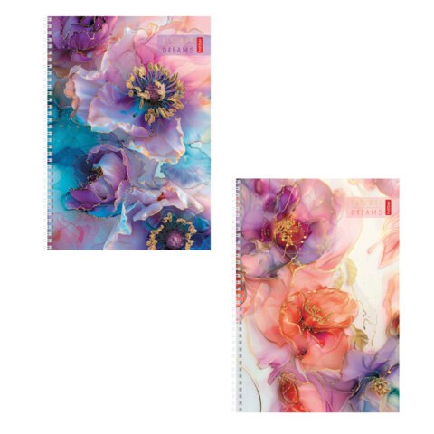 Тетрадь А4 96 л., HATBER, гребень, клетка, матовая ламинация, 3D-фольга, "Цветочные сны" (микс), 088814, 96Т4лофВ1гр