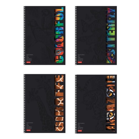 Тетрадь А4 96 л., HATBER, гребень, клетка, матовая ламинация, 3D-лак, "Animals print" (микс), 085842, 96Т4лолВ1гр