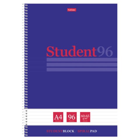 Тетрадь А4 96 л., HATBER, спираль, линия, матовая ламинация, тиснение, "Студенту_Синяя", 082670, 96Т4лтВ2сп29868