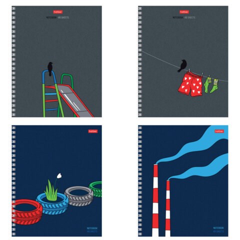 Серия тетрадей А5 формата (167х202мм), 48 листов. Обложка - мелованный картон. 4 дизайна в блоке. Внутренний блок - офсетная бумага, плотность 60-65 гр., клетка,. Белизна - 100% Вид крепления - гребень.