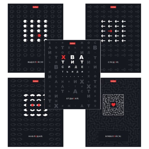 Серия тетрадей А5 формата (167х202мм), 48 листов. Обложка - мелованный картон. 5 дизайнов в блоке. Вид отделки- выб.лак. Внутренний блок - офсетная бумага, плотность 60-65 гр., клетка, красные поля. Белизна - 100% Вид крепления - скоба. Скругленные уголки обложки и блока.