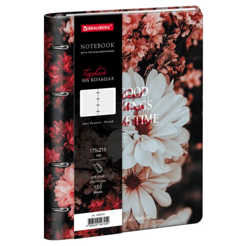 Тетрадь на кольцах А5 180х220, 120л, под кожу, BRAUBERG VISTA, Цветы, 405210