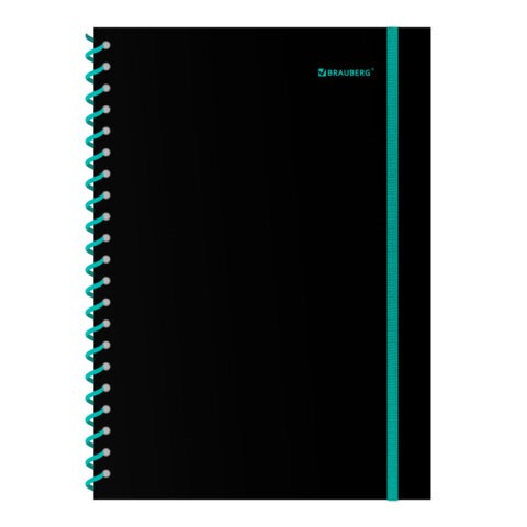 Тетрадь обложка пластик, А4 80 л., спираль пластик, резинка, клетка, BRAUBERG, черный/синий, 405381