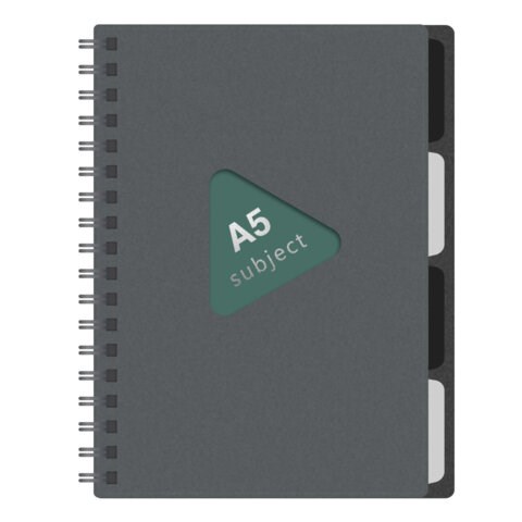 Тетрадь обложка пластик, А5 80 л., гребень, 4 разделителя, клетка, BRAUBERG, серый, 405369