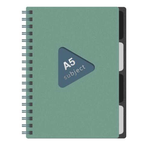 Тетрадь обложка пластик, А5 80 л., гребень, 4 разделителя, клетка, BRAUBERG, зеленый, 405367