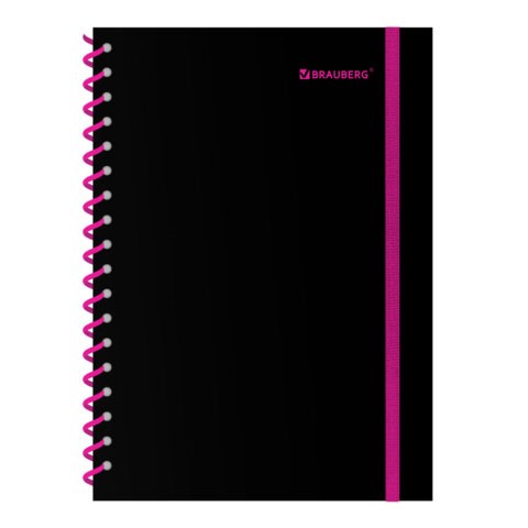 Тетрадь обложка пластик, А5 80 л., спираль пластик, резинка, клетка, BRAUBERG, черный/розовый, 405384