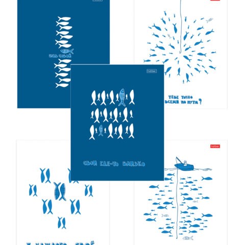 Тетрадь обложка пластик с печатью, А5, 96 л., скоба, клетка, HATBER, "Рыба моя" (микс в спайке), 090215, 96Т5В1пл