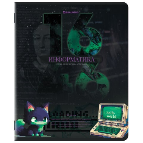 Тетрадь предметная ДАТЫ 48 л., TWIN-лак, ИНФОРМАТИКА, клетка, подсказ, BRAUBERG, 405128