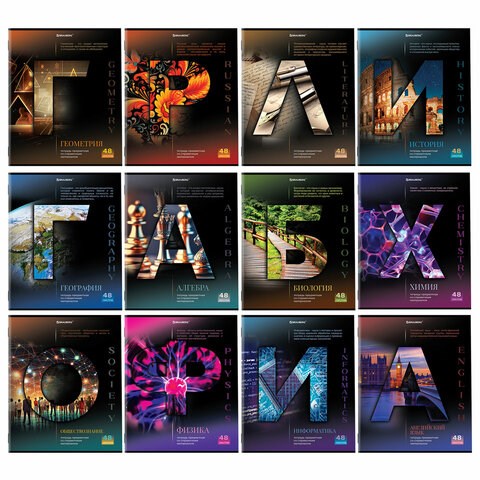 Тетради предметные, КОМПЛЕКТ 12 ПРЕДМЕТОВ, 48 л., обложка картон, BRAUBERG, "КЛАССИКА SCIENCE", 404843