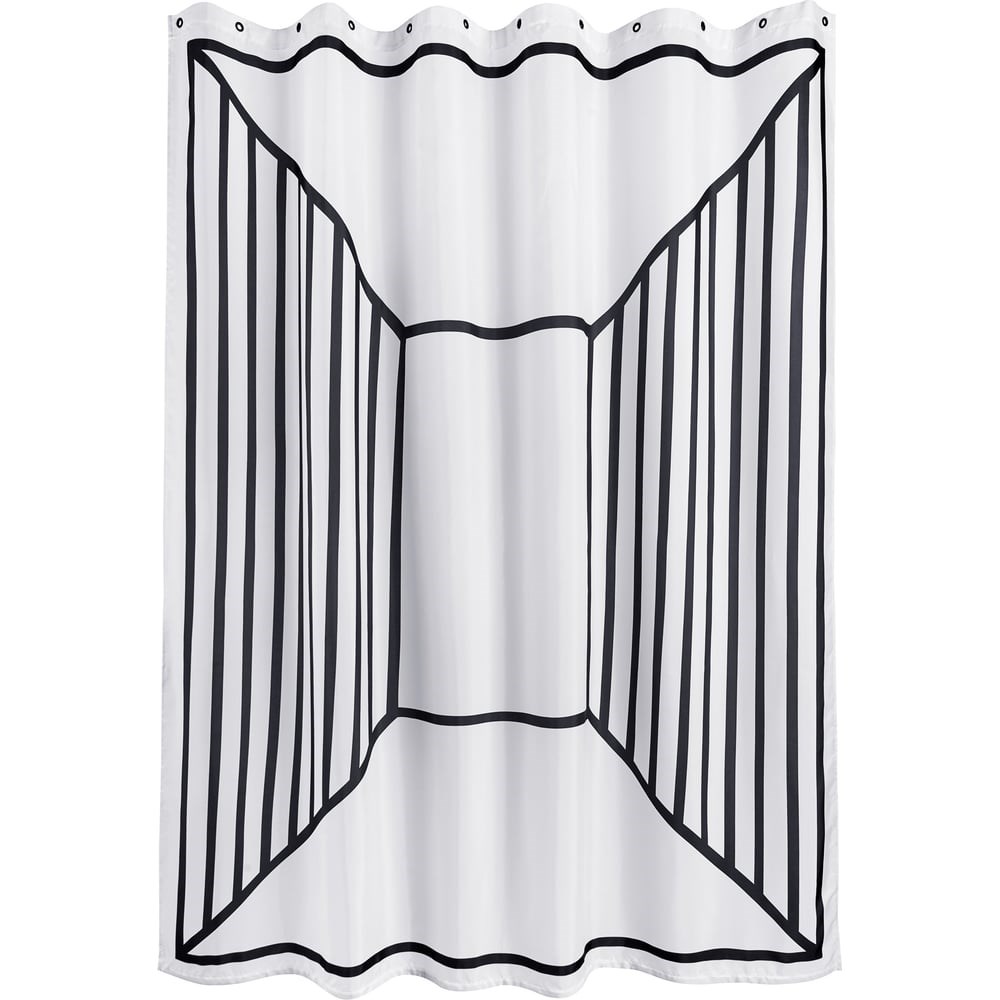 Занавеска для ванной комнаты Moroshka Grafica тканевая, 180x200 см., цвет белый черный 935-301-01 является частью коллекции Grafica. Благодаря водоотталкивающему покрытию полотно не пропускает воду. За счет утяжелителя, вшитого по нижнему краю, ткань расправляется сама. Занавеска имеет 12 люверсов под кольца. Крепления в комплект не входят. Изделие с необычным рисунком в стиле 3D-иллюзии придаст пространству индивидуальный стиль, а благодаря монохромной палитре легко впишется в интерьер любой ванной комнаты. Занавеска идеально сочетается с другими аксессуарами из коллекции Grafica.