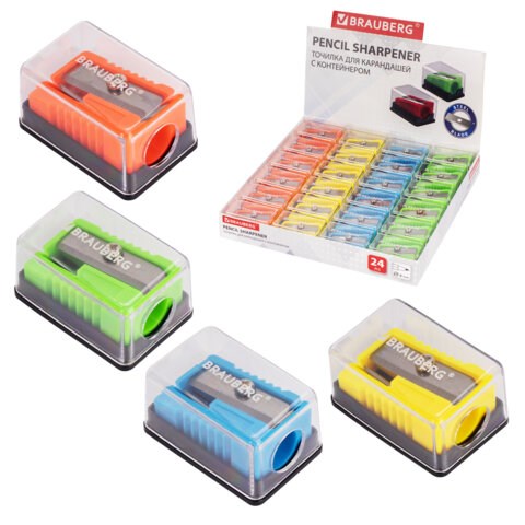Точилка BRAUBERG "Assistant Mini", с контейнером, пластиковая, корпус ассорти, 228458