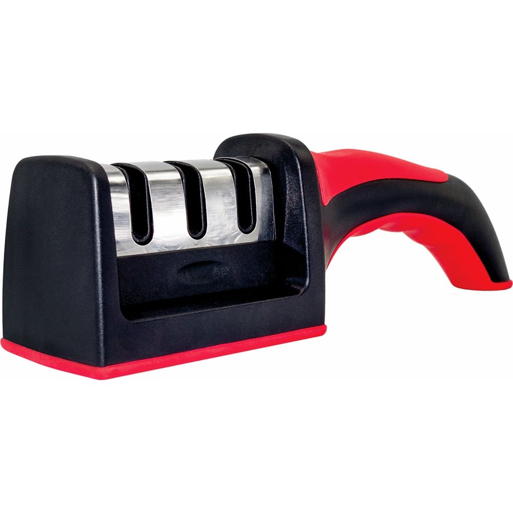 Точилка для ножей DASWERK – это отличный инструмент для заточки ножей (универсальных, столовых, поварских, овощных, охотничьих, складных, рыбацких, туристических).Ножеточка ручная наточит нож не хуже, чем электрическая точилка для ножей. Трёхзонная точилка для ножей будет полезна не только в домашнем хозяйстве, но и на офисной кухне или на даче. Точилка пригодится и во время отдыха на природе.Наточить нож очень просто: необходимо лишь поместить лезвие в слот остриём вниз, а затем провести несколько раз по направлению к себе.Корпус заточки для ножей выполнен из приятного на ощупь пластика и имеет удобную эргономичную ручку с удобным хватом для руки. Точилка для ножей - универсальная, подходит для правши и для левши. Прорезиненные вставки в основании не позволяют прибору скользить по столу и другим поверхностям.