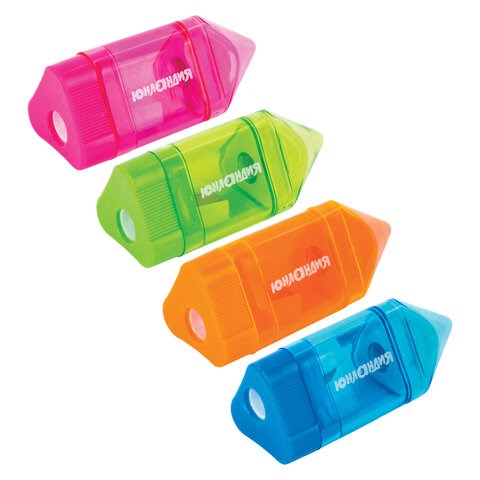 Точилка ЮНЛАНДИЯ "Карандашик", со стирательной резинкой, с контейнером, пластиковая, ассорти, 228440
