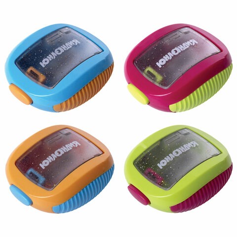Эргономичный корпус в форме звездолёта выполнен из пластика. Удобная кнопка открытия крышки контейнера. Острое стальное лезвие обеспечивает быструю и легкую заточку. Карандаш затачивается аккуратно, а опилки остаются в специальном контейнере. Размер - 54х42х19 мм.