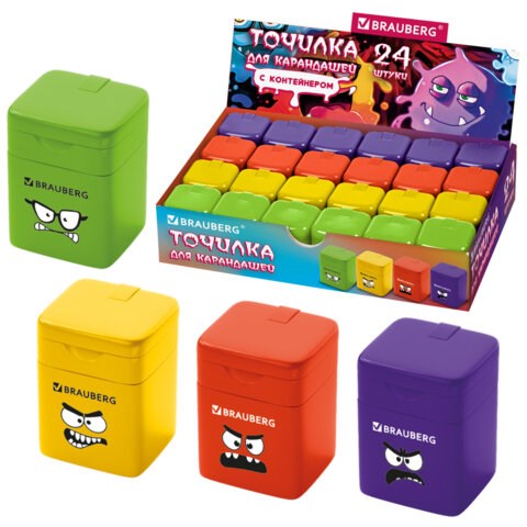 Точилка кросс-серия "МОНСТРИКИ", с контейнером, корпус ассорти, BRAUBERG, 273235