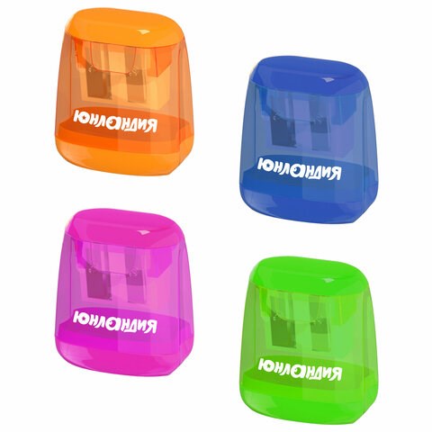 Точилка с контейнером для простых и утолщенных карандашей ЮНЛАНДИЯ "СУНДУЧОК", 2 отверстия, 272506