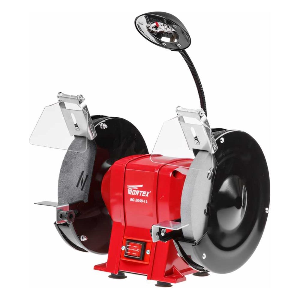 Точильный станок WORTEX BG20401L0023 предназначен для заточки инструмента. Корпус модели выполнен из качественного металла и покрыт термостойкой краской для защиты от коррозии. Станок оснащен защитными щитками и металлическими кожухами для безопасного использования. Модель имеет устойчивое основание и пылезащищенный выключатель. Два установленных круга имеют разную зернистость (мелкую и крупную) для заточки различного инструмента. Отличительной особенностью данной модели является наличие подсветки рабочей зоны для удобной эксплуатации.